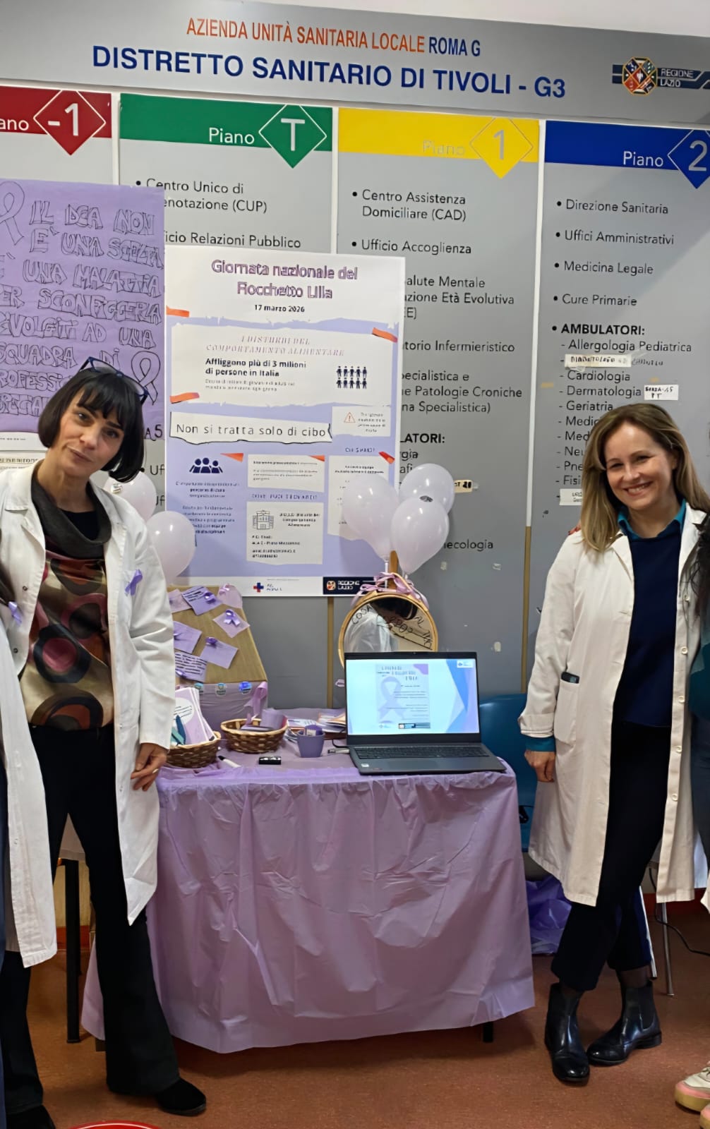 In occasione della Giornata Nazionale del Fiocchetto Lilla, dedicata alla sensibilizzazione sul tema dei Disturbi della Nutrizione e dell’Alimentazione, il servizio UOSD DNA sarà presente il giorno 17 marzo dalle 10:00 alle 12:00 presso i Distretti della ASL per offrire informazioni e distribuire materiale divulgativo.