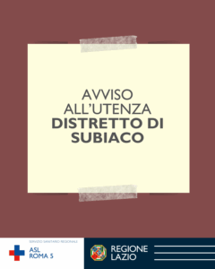 Si avvisa l’utenza che il Distretto di Subiaco – Largo Mazzini 5, ha ripreso la piena attività lavorativa con il ripristino delle linee internet e