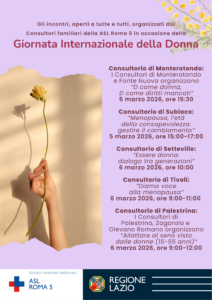 La forza femminile AL CENTRO In occasione della giornata internazionale della donna dell’8 Marzo, i consultori della ASL Roma 5 invitano le donne a partecipare