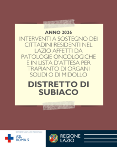 Domanda di contributo anno 2026 per Interventi a sostegno dei cittadini residenti nel Lazio affetti da patologie oncologiche e in lista d’attesa per trapianto di organi solidi o di midollo