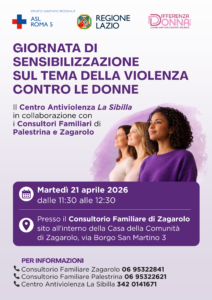 Il giorno 21 Aprile 2026 dalle ore 9.30 alle ore 12.30 presso la Casa della Comunità di Zagarolo si svolgerà una giornata di sensibilizzazione sul