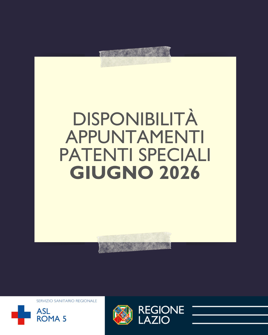 Si avvisa l’utenza che da oggi 09/03/2026, sono disponibili gli appuntamenti presso la commissione medica locale per patenti speciali per il mese di giugno
