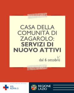 Si informa l’utenza che a partire dal 06 ottobre 2025 saranno nuovamente attivi nella Casa della comunità di Zagarolo alcuni dei servizi temporaneamente trasferiti per