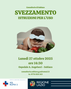 Corso teorico-pratico per lo svezzamento secondo le linee OMS e Ministero della salute. 27 ottobre Consultorio di Subiaco Ospedale A. Angelucci Informazioni Tel: 0774 824