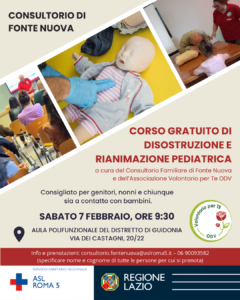 Manovre di disostruzione pediatrica, sapere cosa fare fa la differenza. 7 febbraio ore 9:30 presso l’aula polifunzionale del Distretto di Guidonia Via dei Castagni 20/