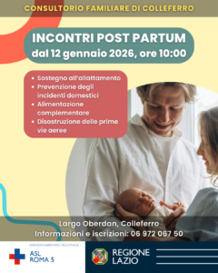 Dal 12 gennaio 2026, ore 10:00 al Consultorio di Colleferro. Sostegno all’allattamento Prevenzione degli incidenti domestici Alimentazione complementare Disostruzione delle prime vie aeree Informazioni e