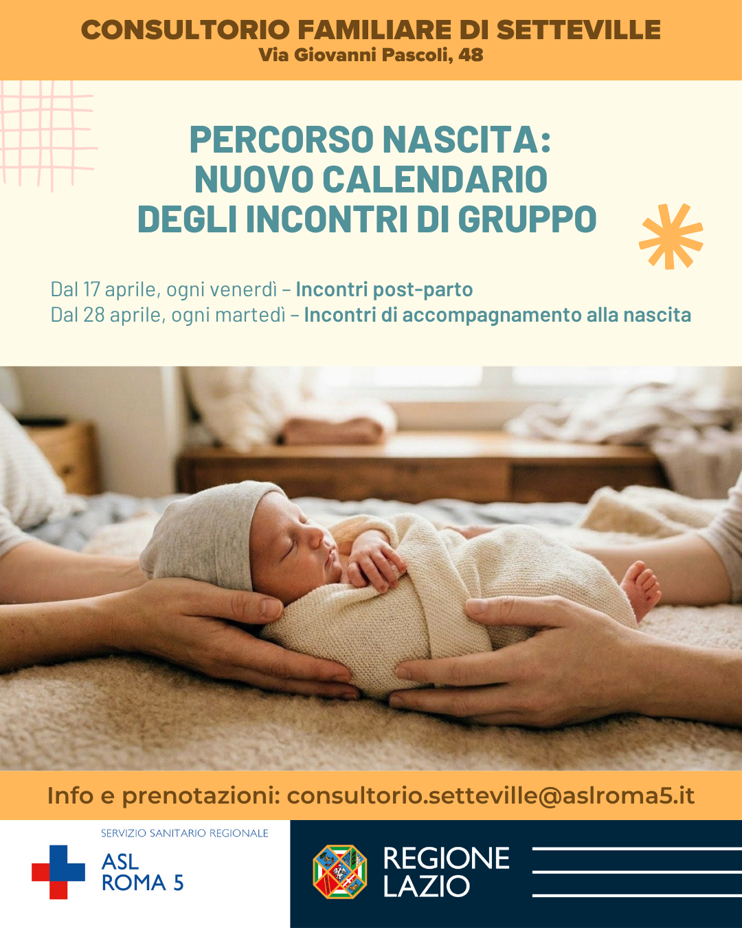 • dal 17 aprile: Incontri post-parto ogni venerdì mattina