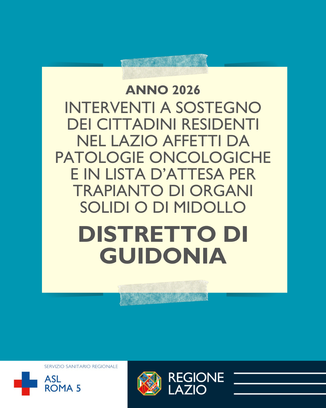 - Domanda di contributo anno 2026 per Interventi a sostegno dei cittadini residenti nel Lazio affetti da patologie oncologiche e in lista d’attesa per trapianto di organi solidi o di midollo (DGR 586/2020 e s.m.i. – DGR 456/2021)