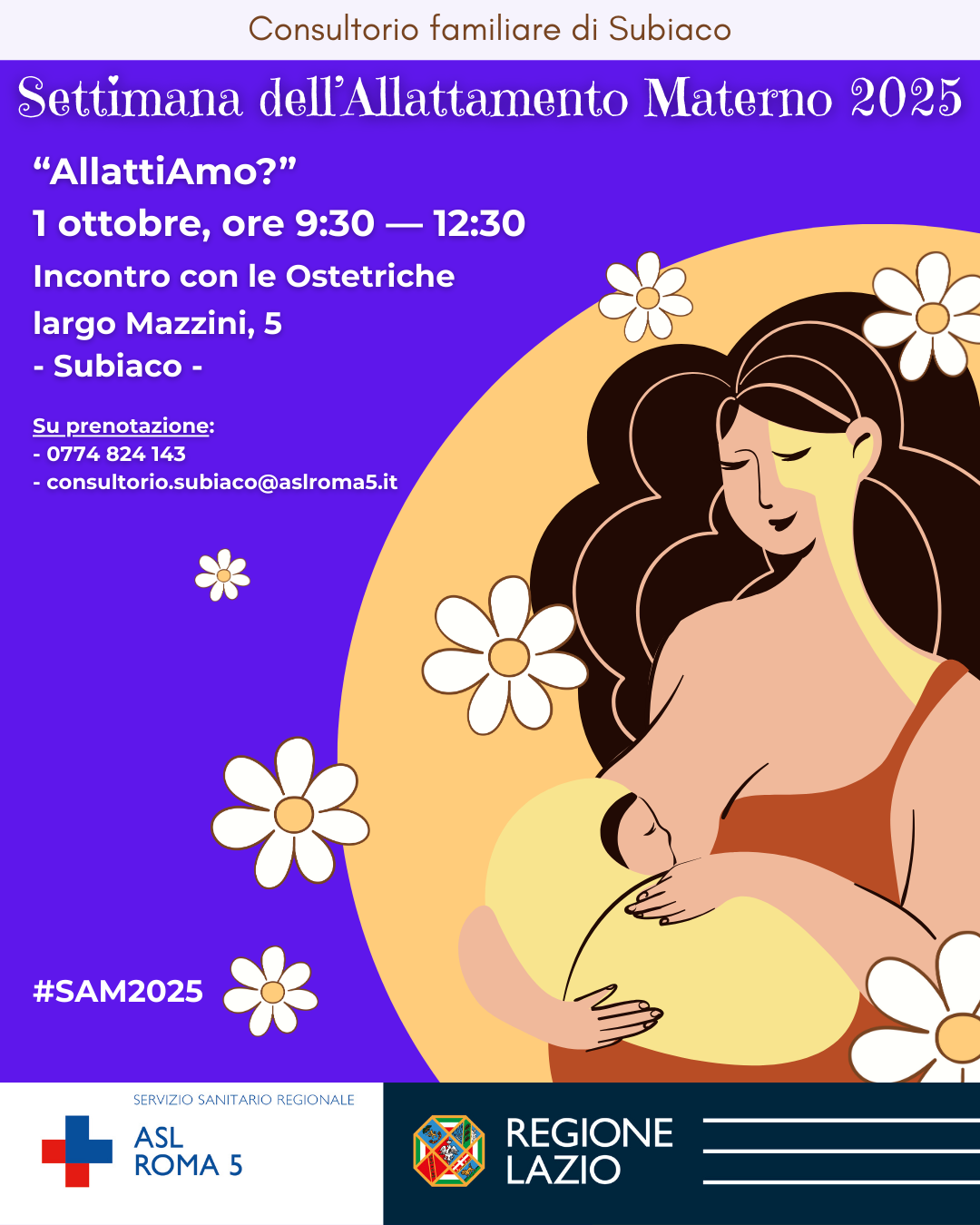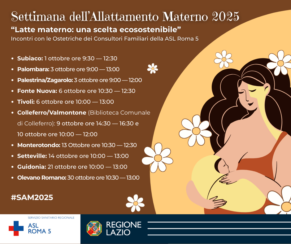 Da mercoledì 1° ottobre, la ASL Roma 5 celebrerà la Settimana dell’Allattamento Materno 2025 con una serie di incontri in programma presso i Consultori familiari per tutto il mese.
